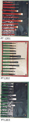 F0301 BRITISH TYPE BRICK BOLSTER F0401 FLOOR CHISEL F0402 DENTED CHISEL F0403 ELECTRICIAN'S CHISEL F0404 BRICK CHISEL F0405 CONCRETE PONIT CHISEL FT0701 7-PIECE CHROME-PLATED MACHINIST'S CHISEL SET |